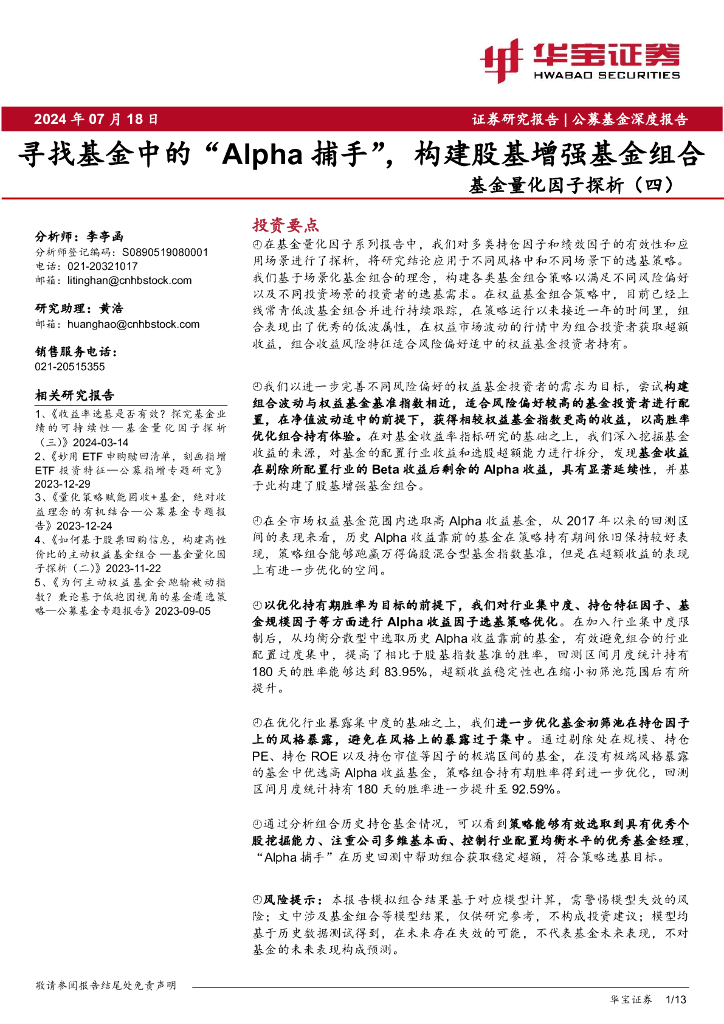 华宝证券:基金量化因子探析(四):寻找基金中的“ Alpha 捕手”,构建股基增强基金组合.pdf