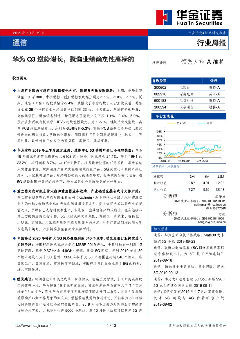 华金证券:通信行业周报:华为Q3逆势增长,聚焦业绩确定性高标的.pdf