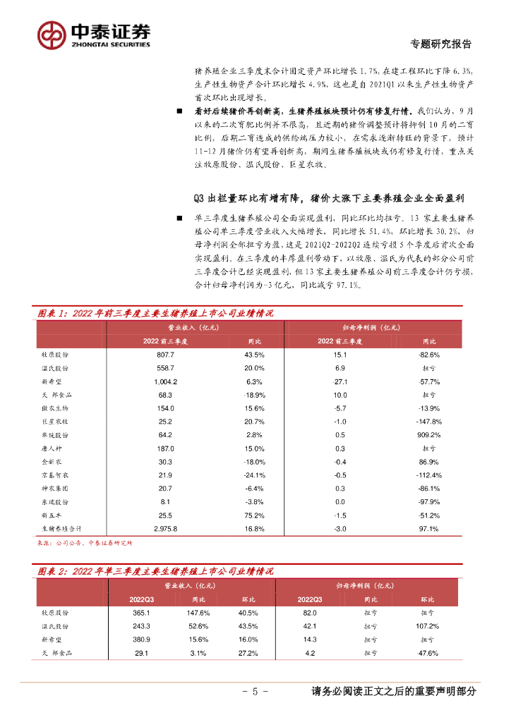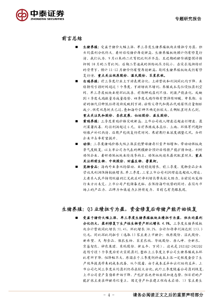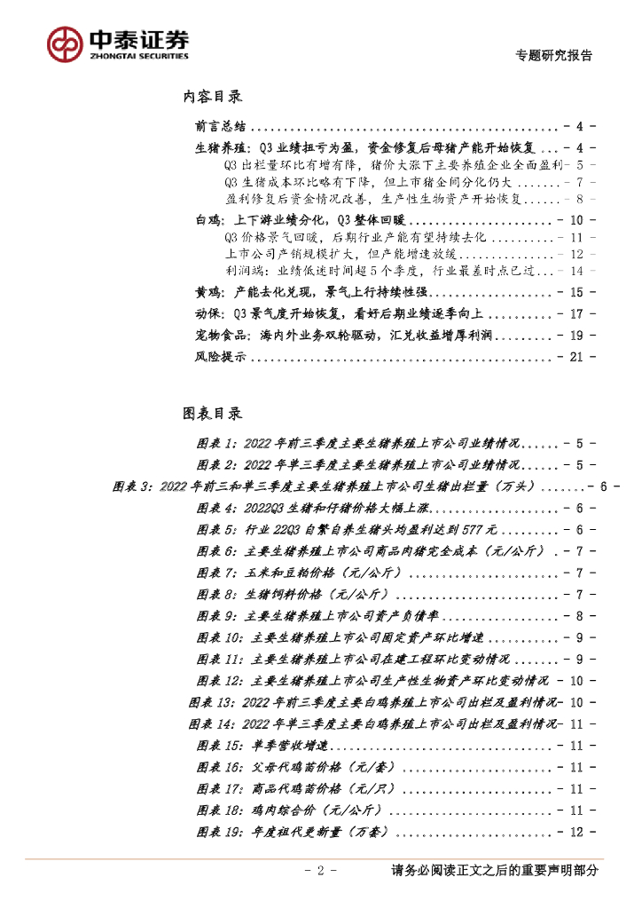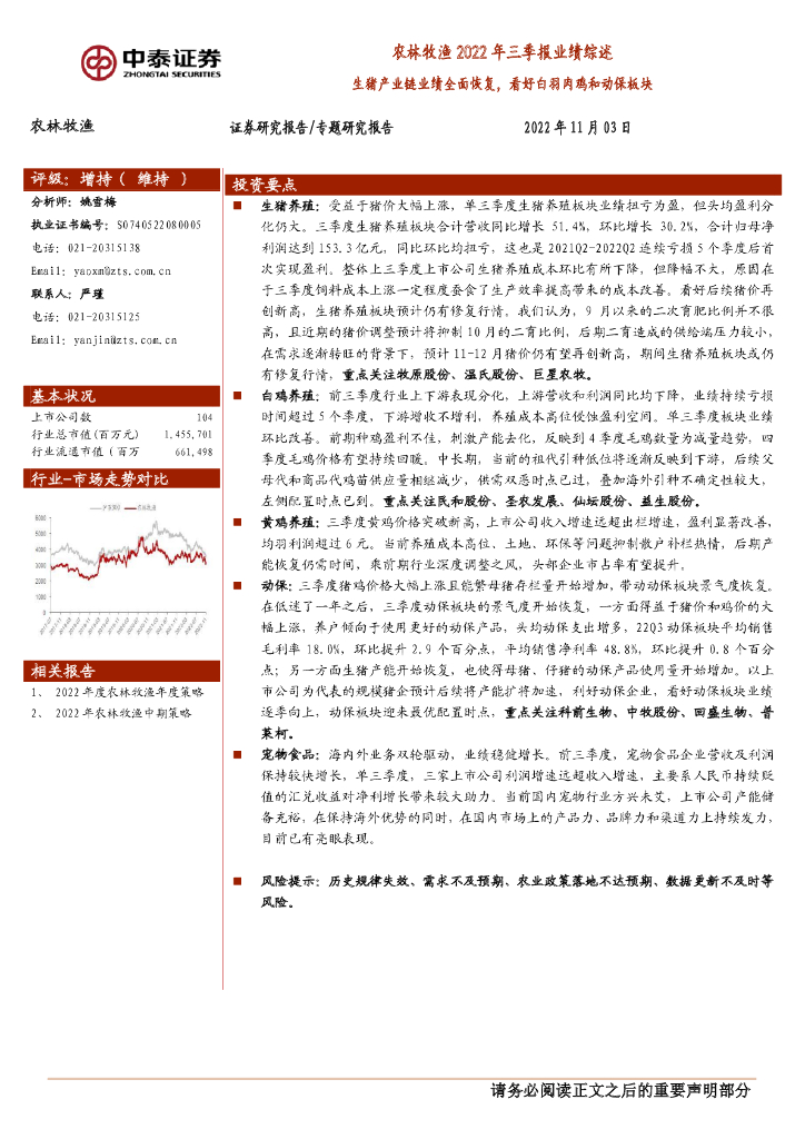 中泰证券:农林牧渔2022年三季报业绩综述:生猪产业链业绩全面恢复,看好白羽肉鸡和动保板块.pdf