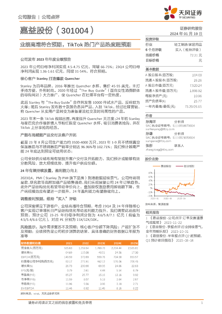 天风证券:嘉益股份(301004)-业绩高增符合预期,TikTok热门产品热度超预期.pdf