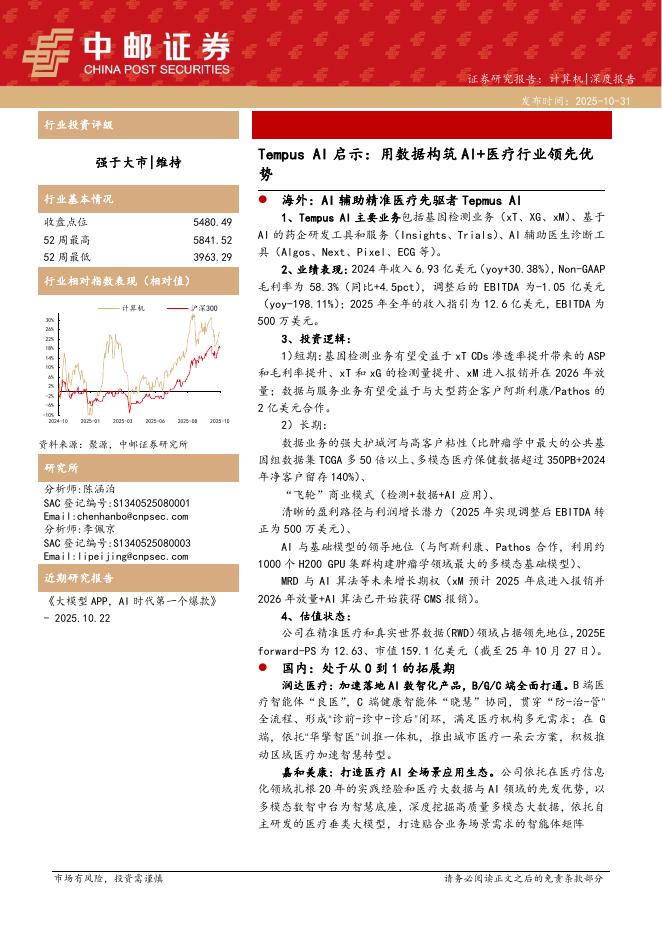 中邮证券:计算机深度报告:TempusAI启示:用数据构筑AI+医疗行业领先优势.pdf