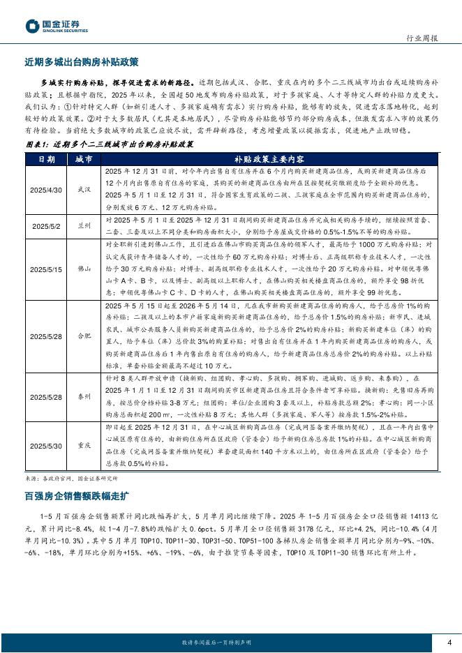 国金证券:房地产行业研究:多城实行购房补贴,百强房企销售额跌幅走扩.pdf