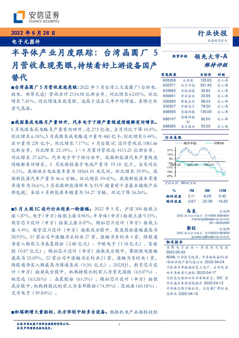 安信证券:半导体产业月度跟踪:台湾晶圆厂5月营收表现亮眼,持续看好上游设备国产替代.pdf