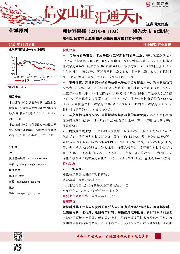 山西证券:新材料周报:常州出台支持合成生物产业高质量发展的若干措施.pdf
