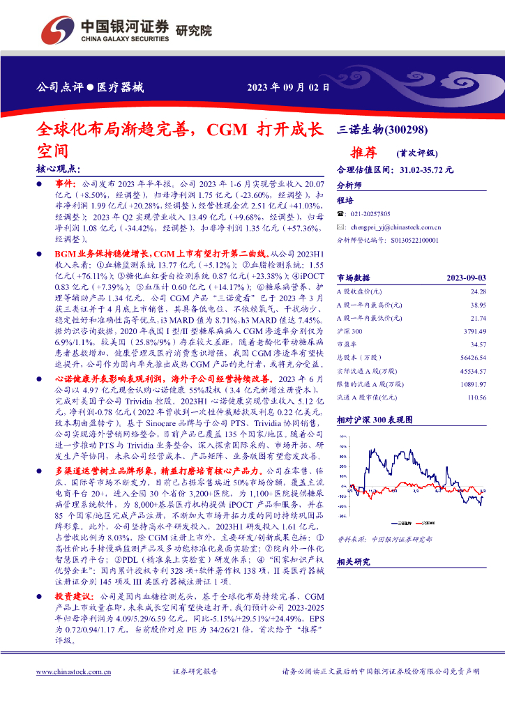中国银河:三诺生物(300298)-全球化布局渐趋完善,CGM打开成长空间.pdf