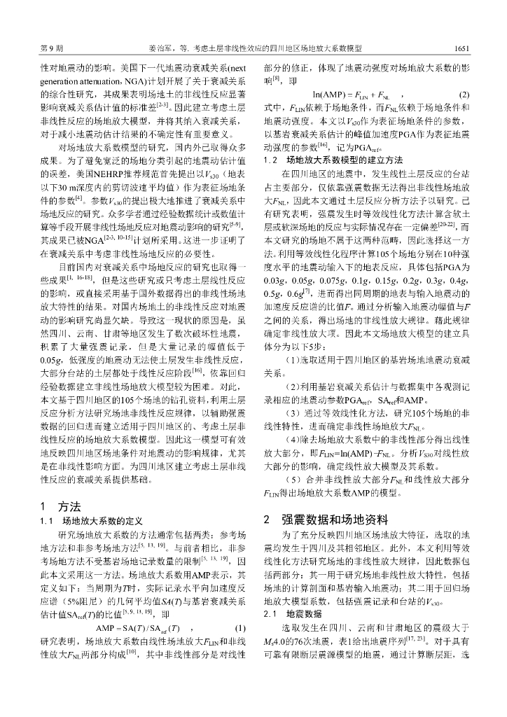 考虑土层非线性效应的四川地区场地放大系数模型.pdf