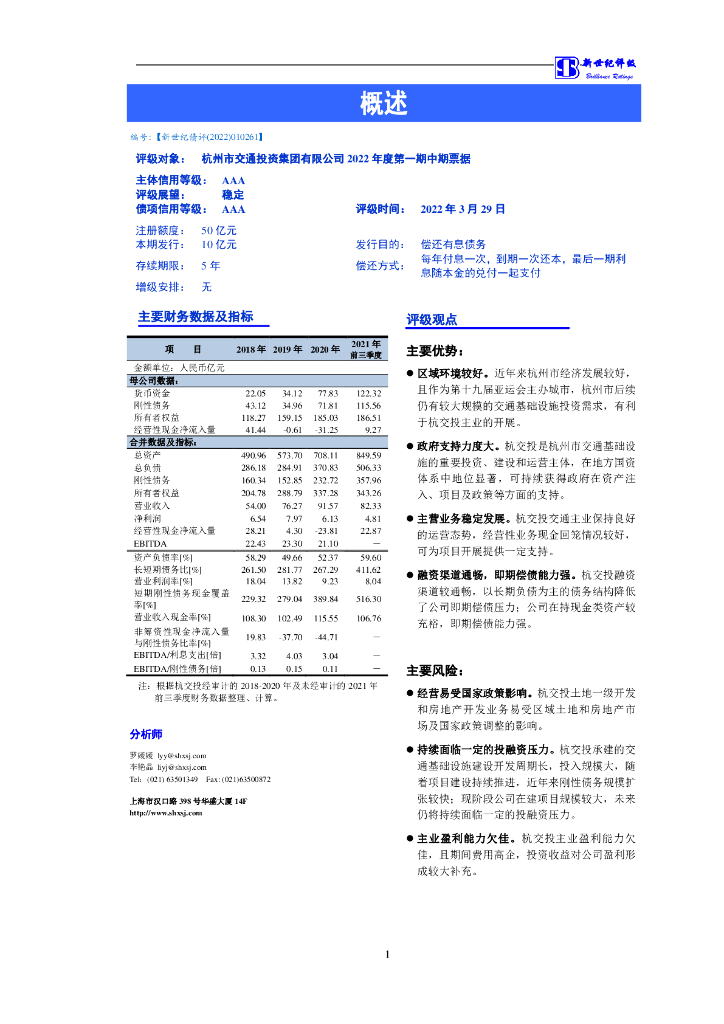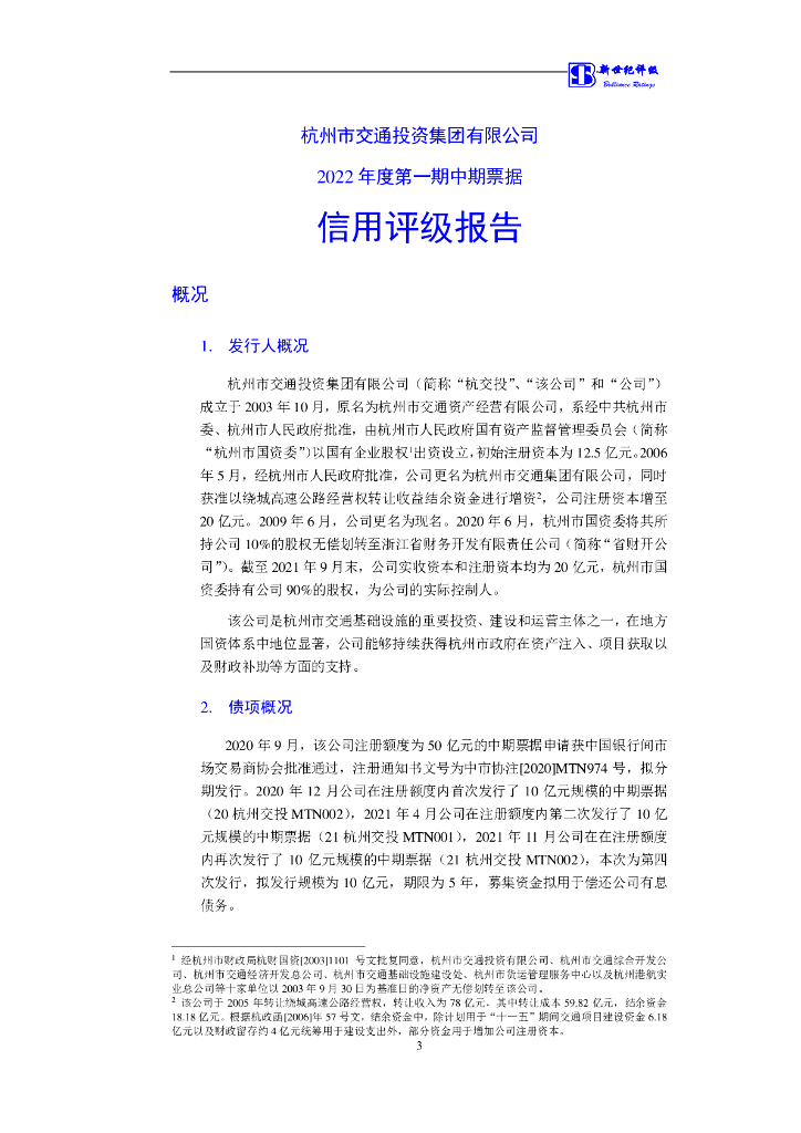新世纪:杭州市交通投资集团有限公司2022年度第一期中期票据信用评级报告.pdf