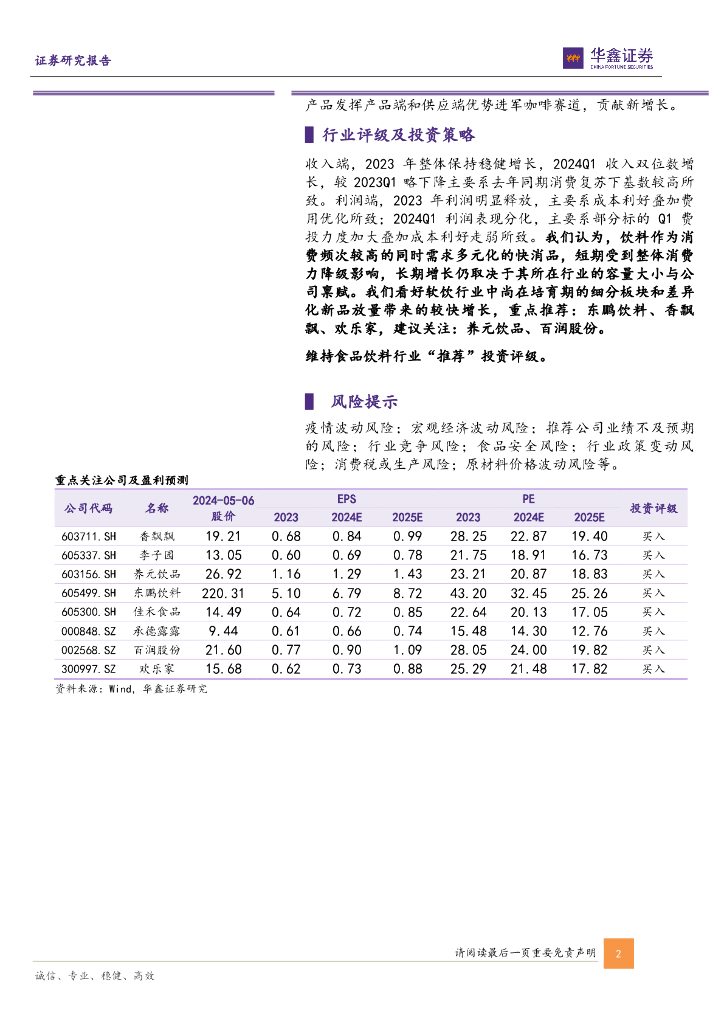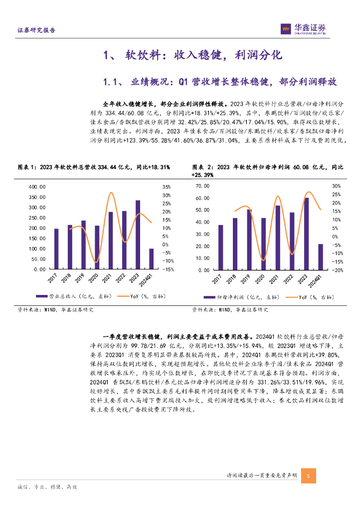 华鑫证券:饮料行业2023年及2024年一季度总结:新品贡献增量收入,费投加大利润部分承压.pdf