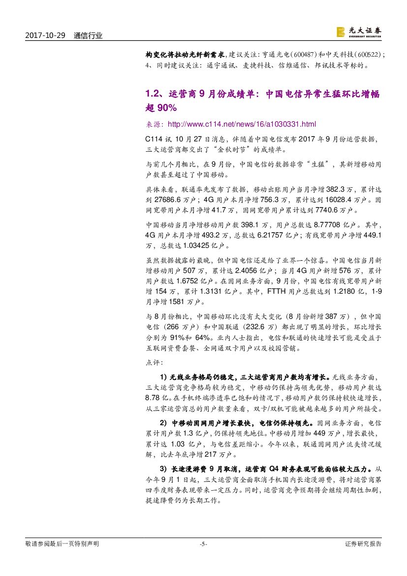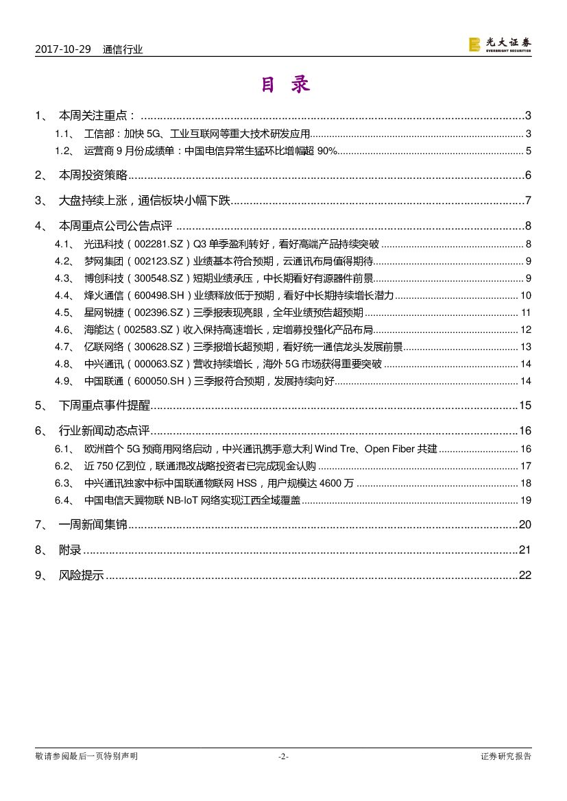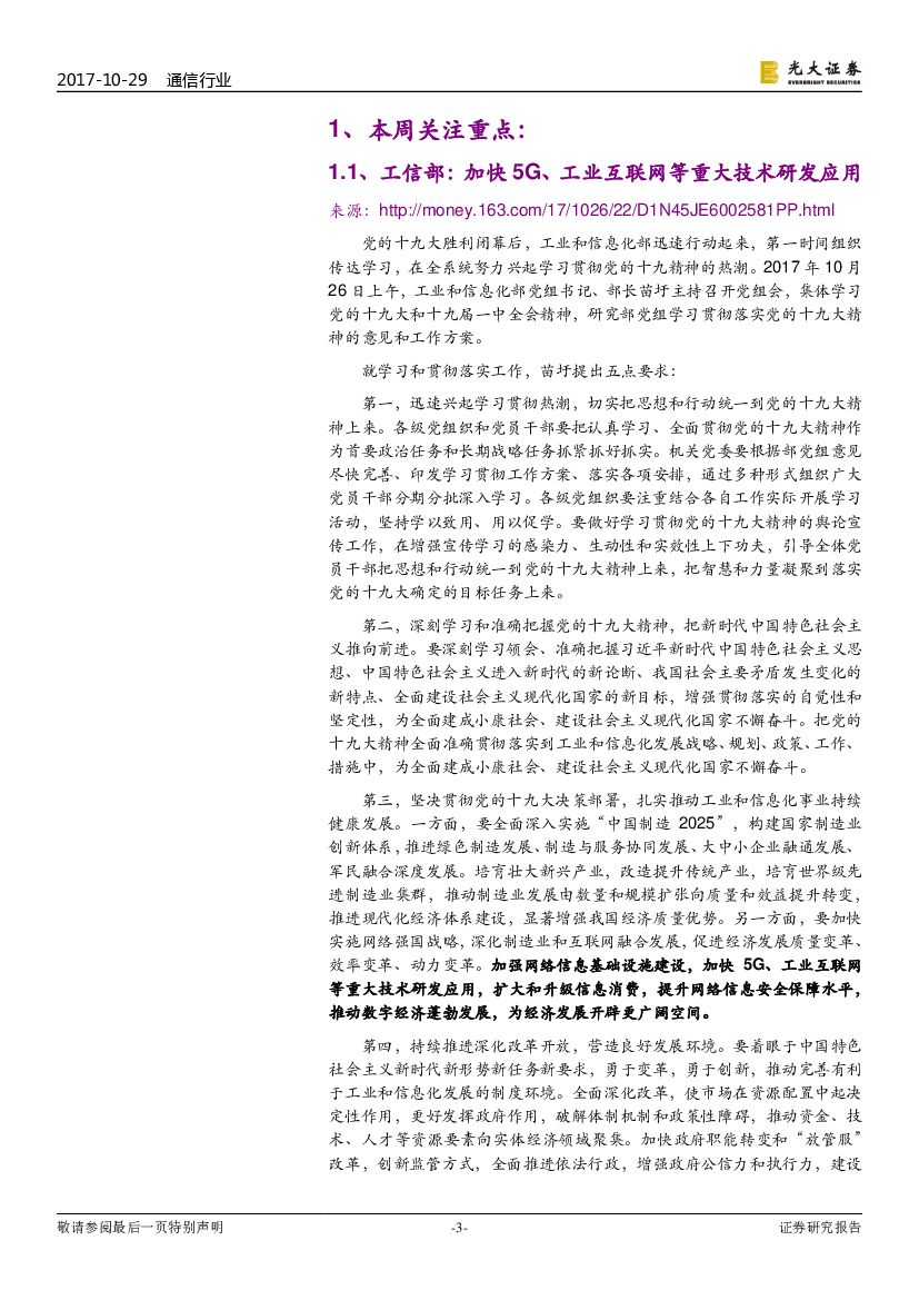 光大证券:通信行业周报:工信部提出加快5G等研发应用,三大运营商报告出炉.pdf