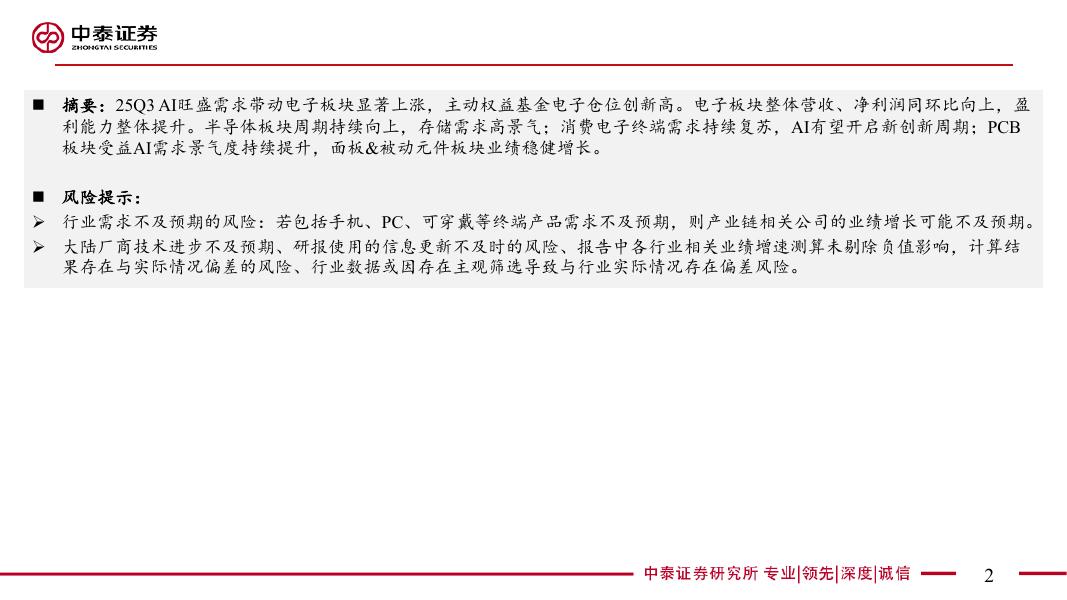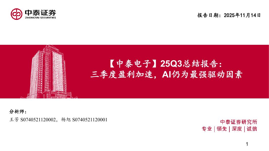 中泰证券:电子行业25Q3总结报告:三季度盈利加速,AI仍为最强驱动因素.pdf