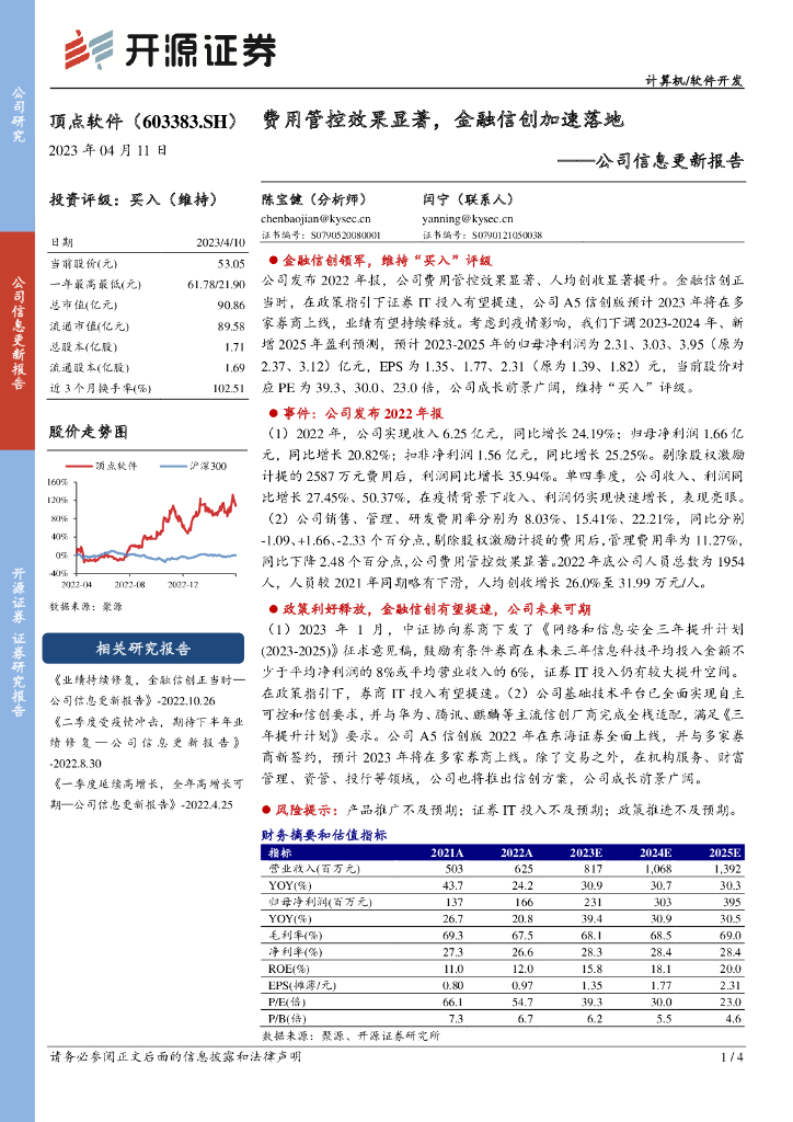 开源证券:顶点软件(603383)-公司信息更新报告:费用管控效果显著,金融信创加速落地.pdf