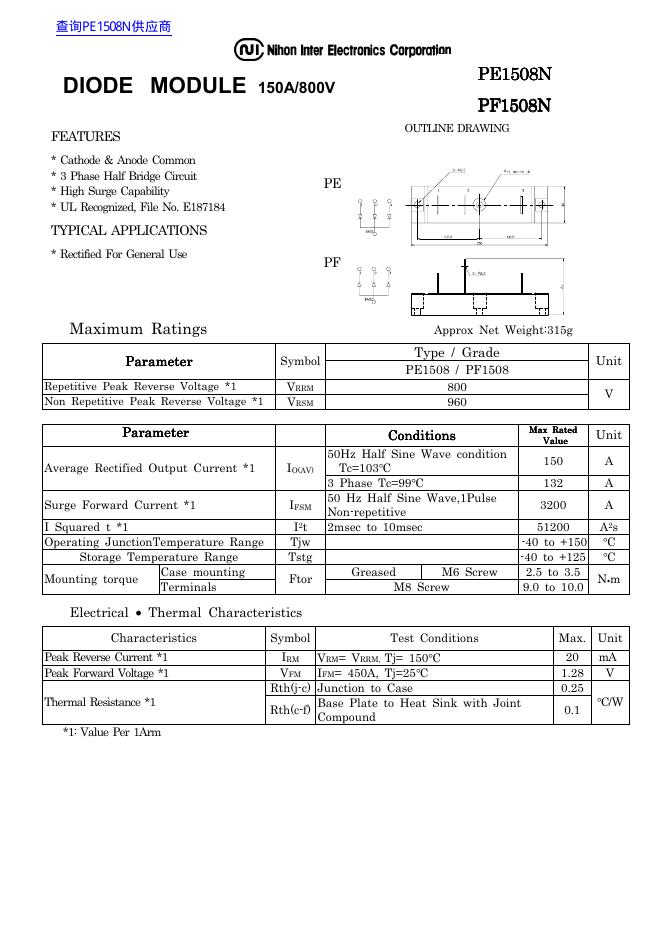 Nihon Inter Electronics PE1508N/PF1508N 数据手册.pdf