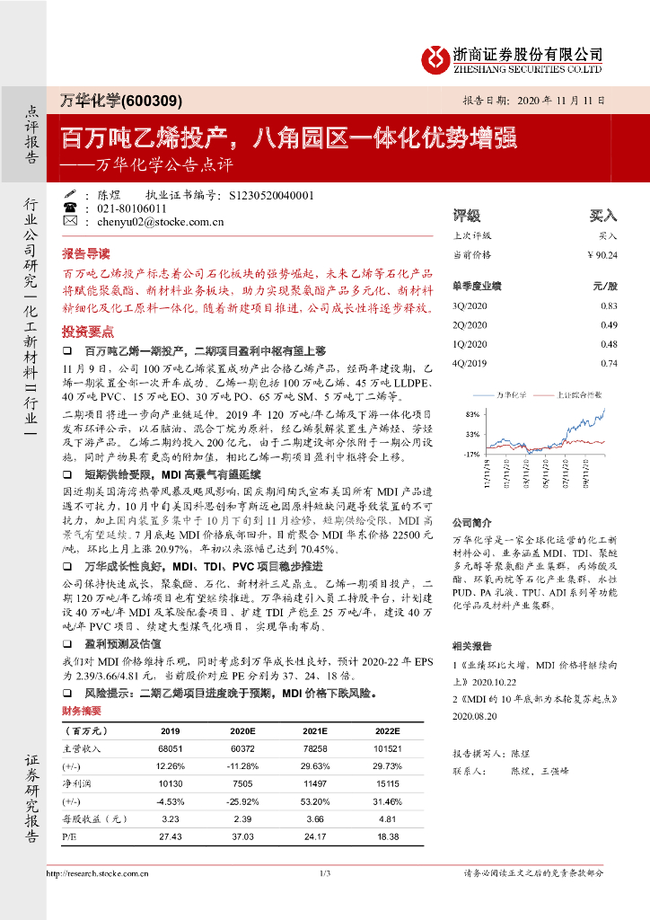 浙商证券:万华化学公告点评:百万吨乙烯投产,八角园区一体化优势增强.pdf