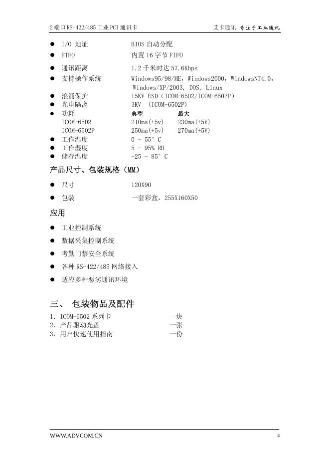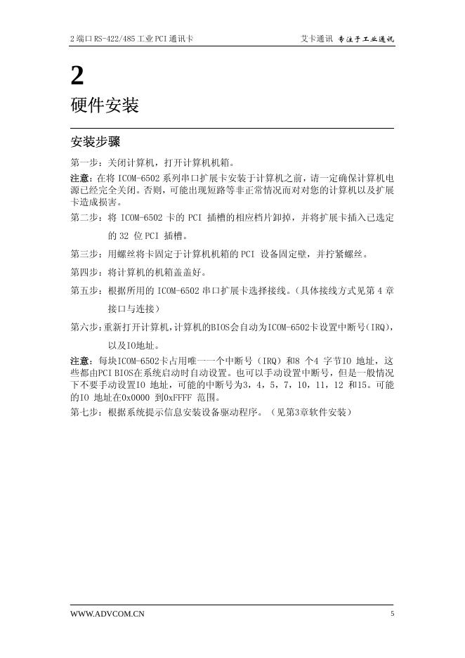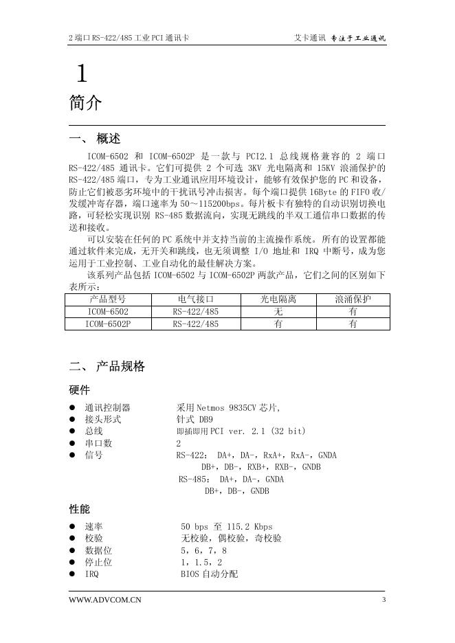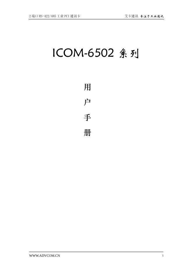 艾卡通讯 ICOM-6502 系列 2 端口 RS-422/485 工业 PCI 通讯卡 用户手册.pdf
