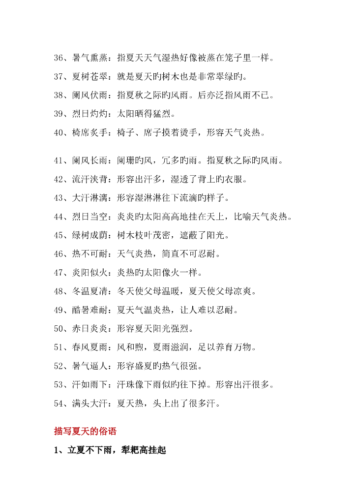 描写夏天的54个成语、俗语、诗词、范文.doc