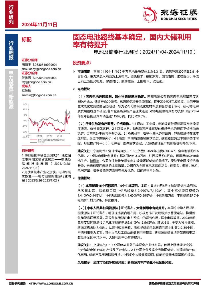 东海证券:电池及储能行业周报:固态电池路线基本确定,国内大储利用率有待提升.pdf
