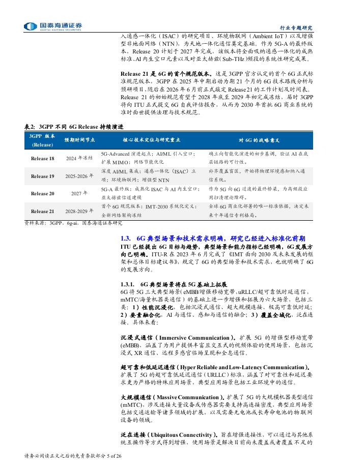 国泰海通证券:电信业务行业6G专题研究:泛在连接和高频段将是6G技术演进关键.pdf