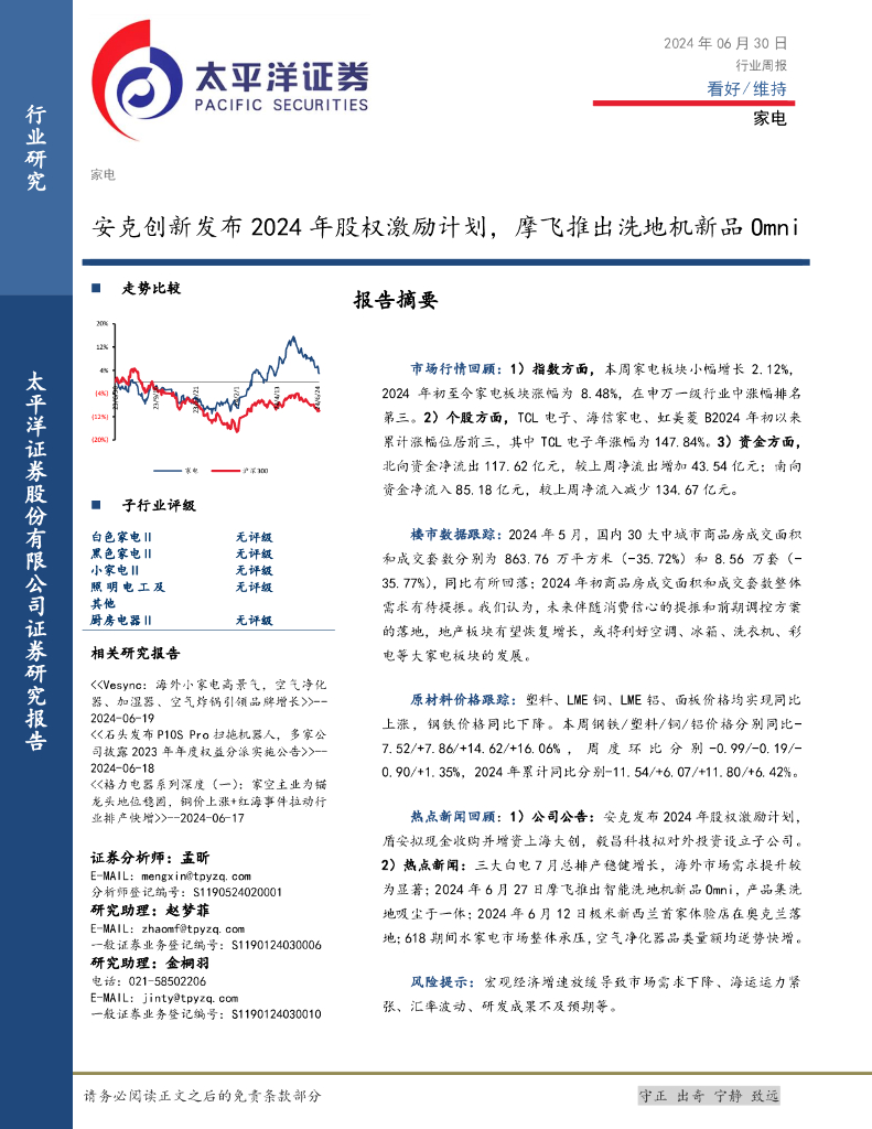 太平洋证券:家电行业周报:安克创新发布2024年股权激励计划,摩飞推出洗地机新品Omni.pdf