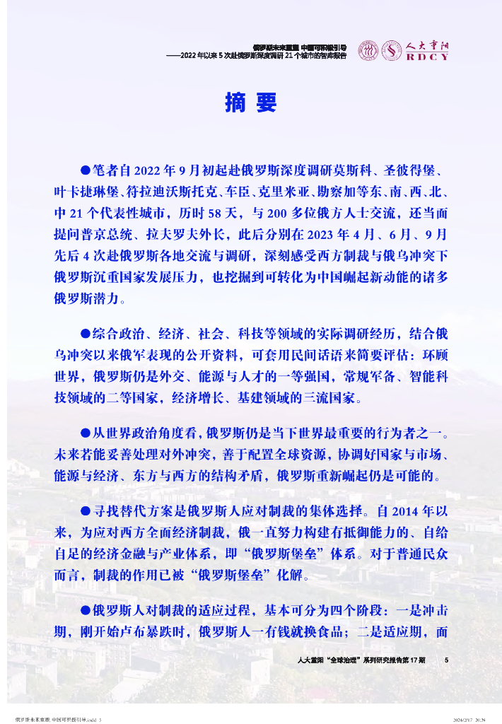 中国人民大学:俄罗斯未来重塑 中国可积极引导——2022年来5次赴俄罗斯深度调研21个城市的智库报告.pdf