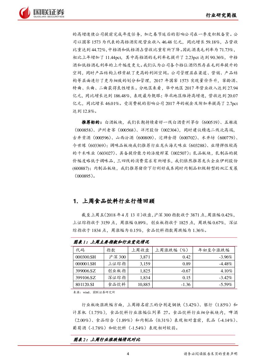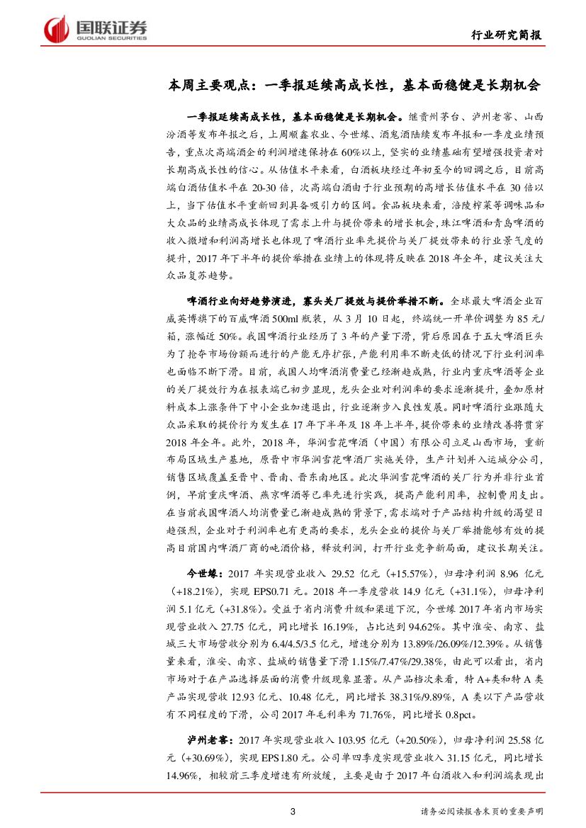 国联证券:食品饮料行业2018年第14期:一季报延续高成长性,基本面稳健是长期机会.pdf