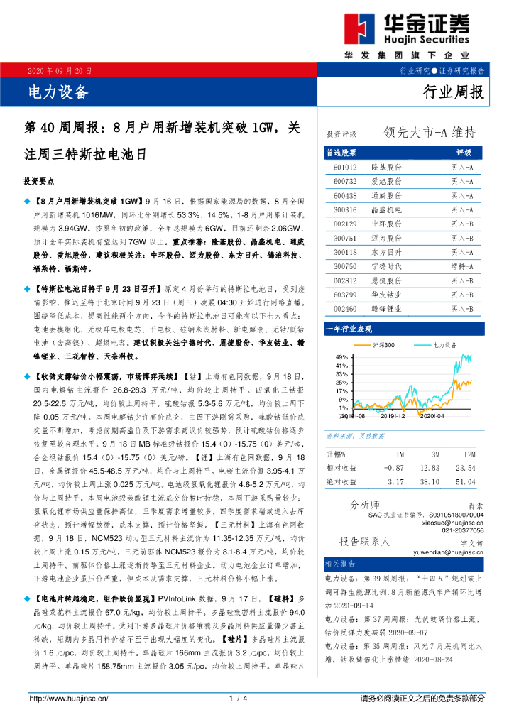 华金证券:电力设备第40周周报:8月户用新增装机突破1GW,关注周三特斯拉电池日.pdf