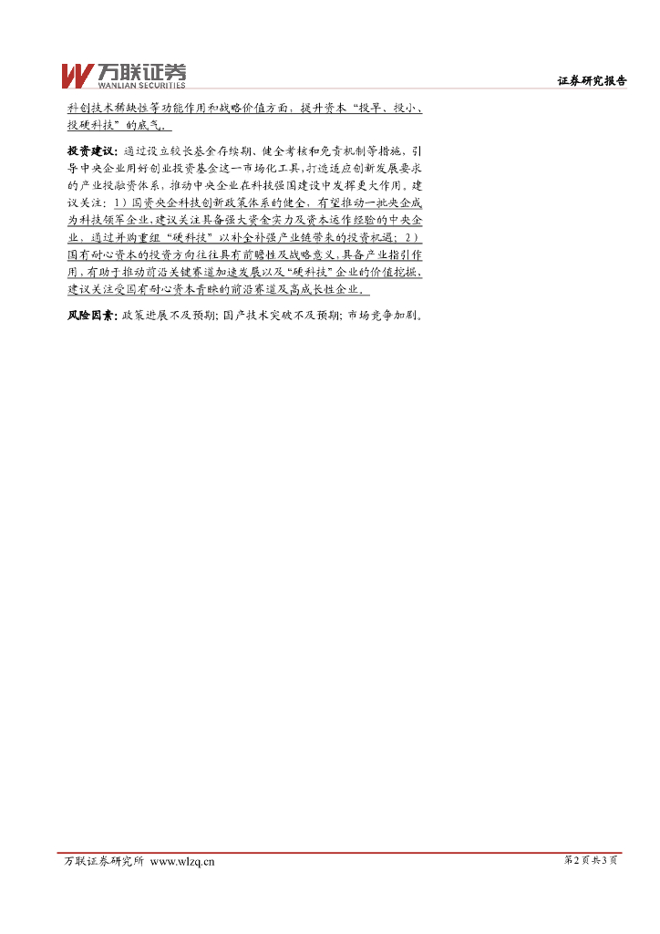 万联证券:电子行业快评报告:中央企业创业投资基金设立,培育壮大国有耐心资本.pdf