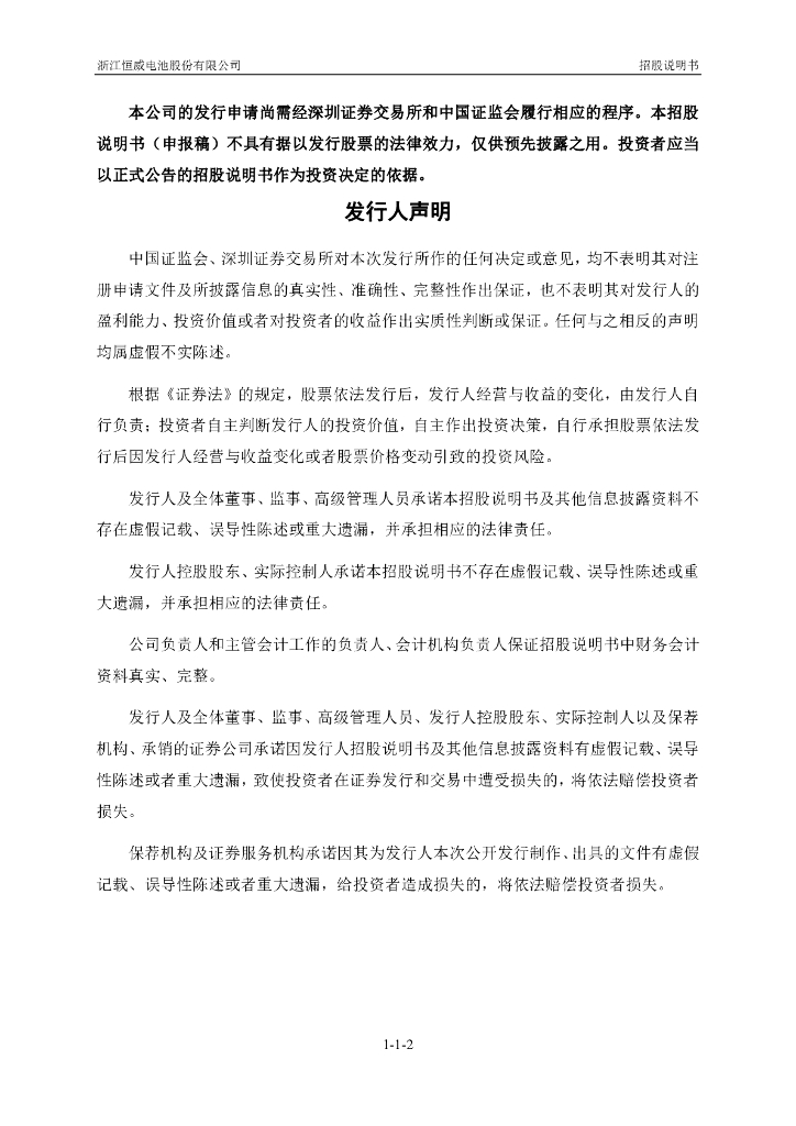浙江恒威电池股份有限公司深交所创业板IPO上市招股说明书.pdf