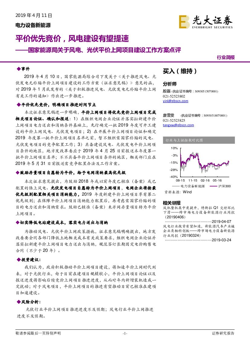 光大证券:国家能源局关于风电、光伏平价上网项目建设工作方案点评:平价优先竞价,风电建设有望提速.pdf