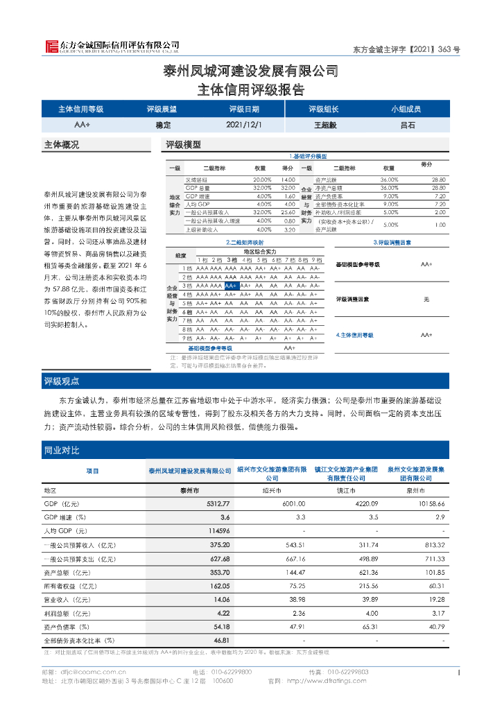 东方金诚:泰州凤城河建设发展有限公司主体评级报告.pdf