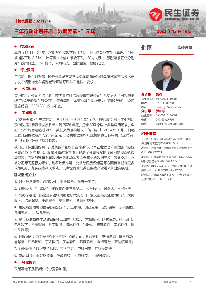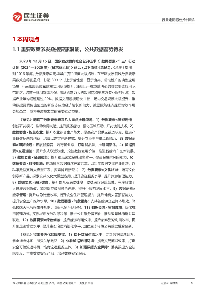 民生证券:计算机周报:三年行动计划开启“数据要素+”元年.pdf