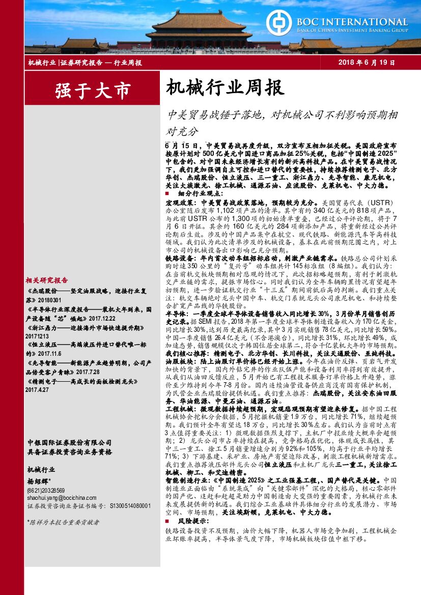 中银国际:机械行业周报:中美贸易战锤子落地,对机械公司不利影响预期相对充分.pdf