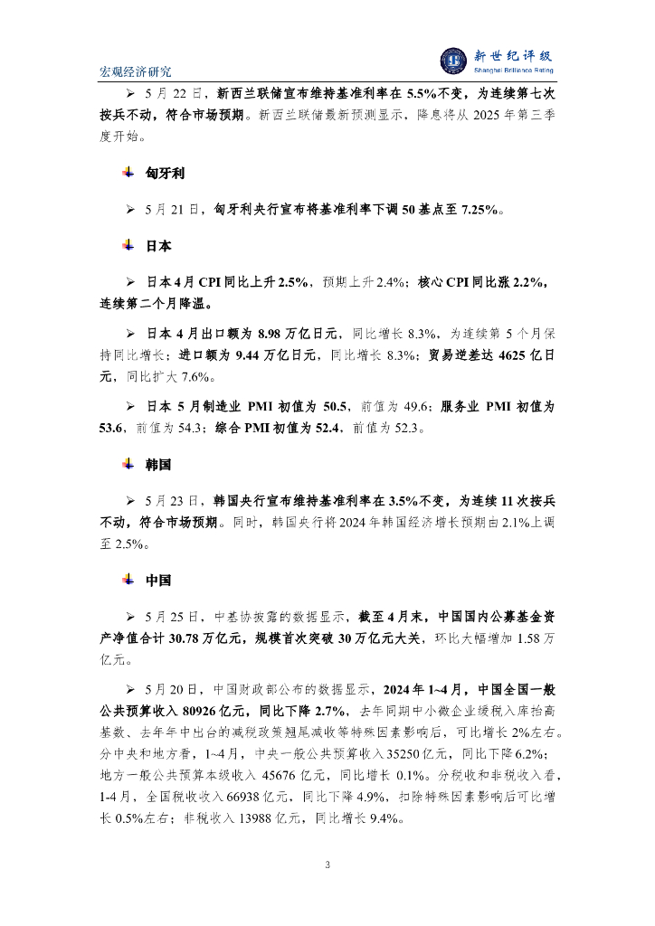 新世纪评级:全球碳定价收入创纪录 中国公募基金规模创新高——全球宏观经济周报(2024/5/18-5/24).pdf