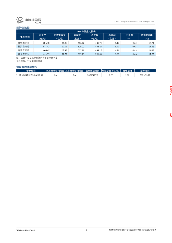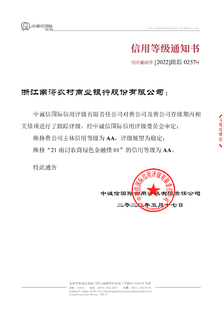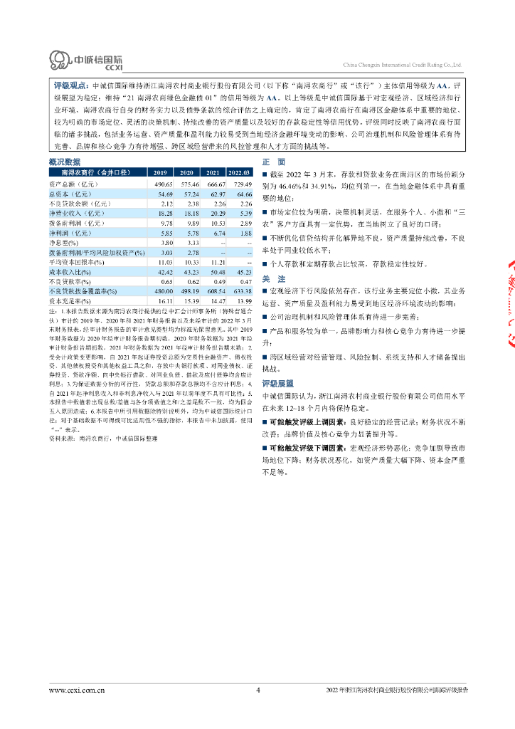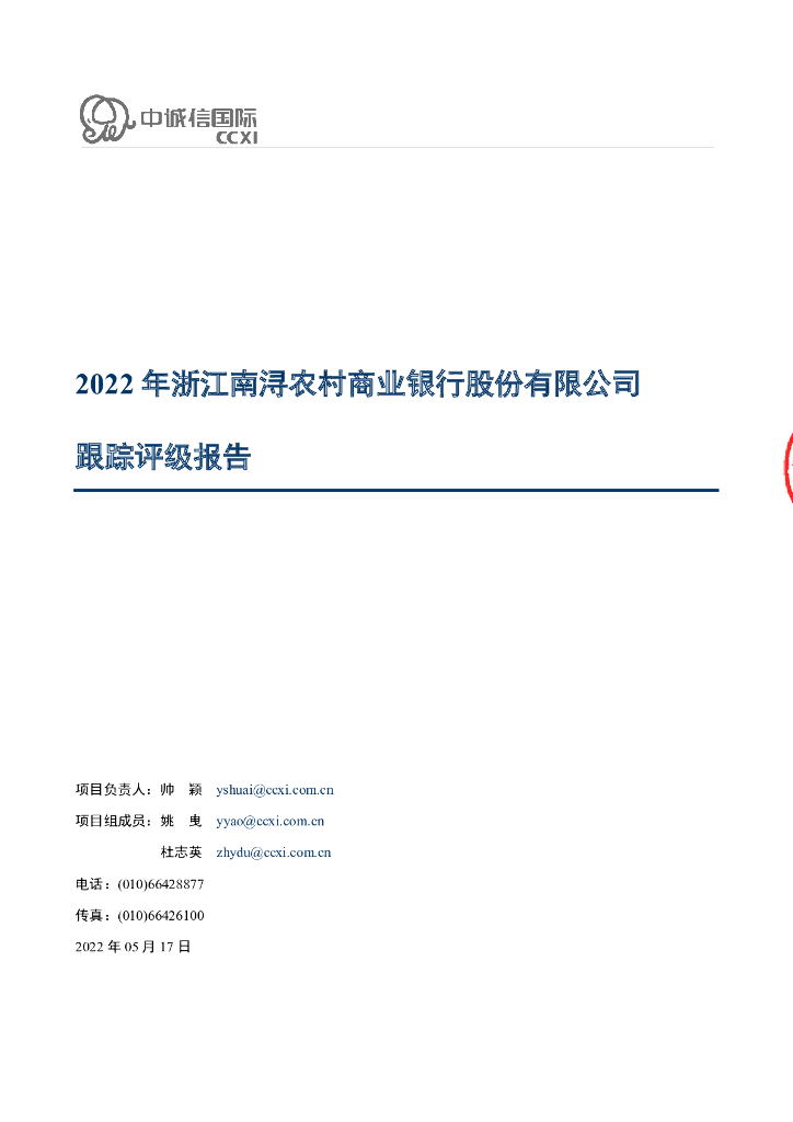 中诚信:2022年浙江南浔农村商业银行股份有限公司跟踪评级报告.pdf