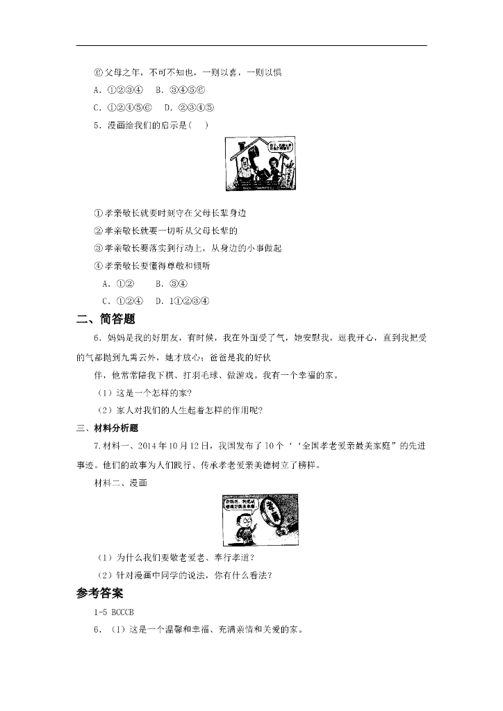 七年级上册 初中道德与法治7.1《家的意味》同步练习.doc