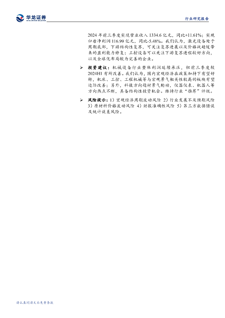 华龙证券:机械设备行业2024年三季报综述:三季度业绩有所改善,把握结构性投资机会.pdf