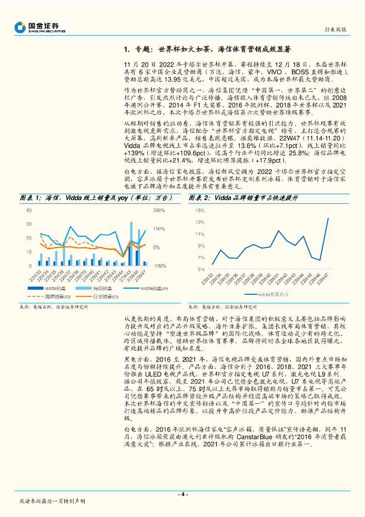 国金证券:家电行业W47周观点:专题:世界杯如火如荼,海信体育营销成效显著.pdf