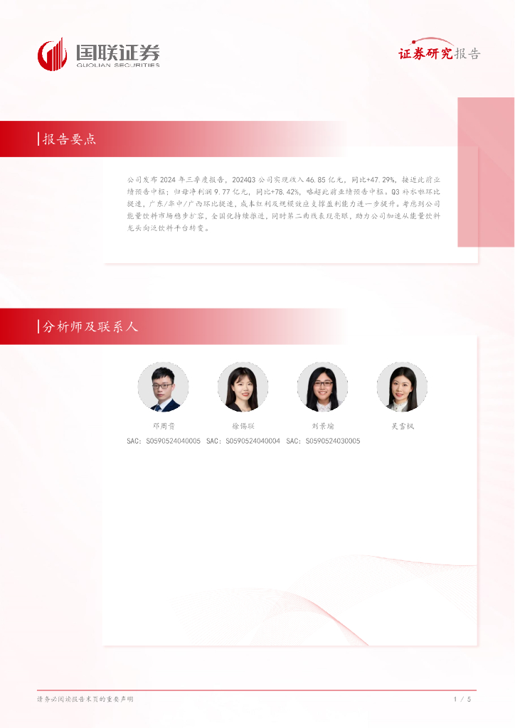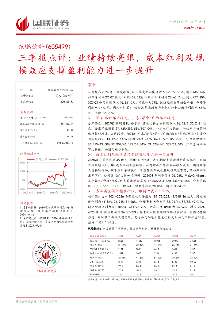 国联证券:东鹏饮料(605499)-三季报点评:业绩持续亮眼,成本红利及规模效应支撑盈利能力进一步提升.pdf