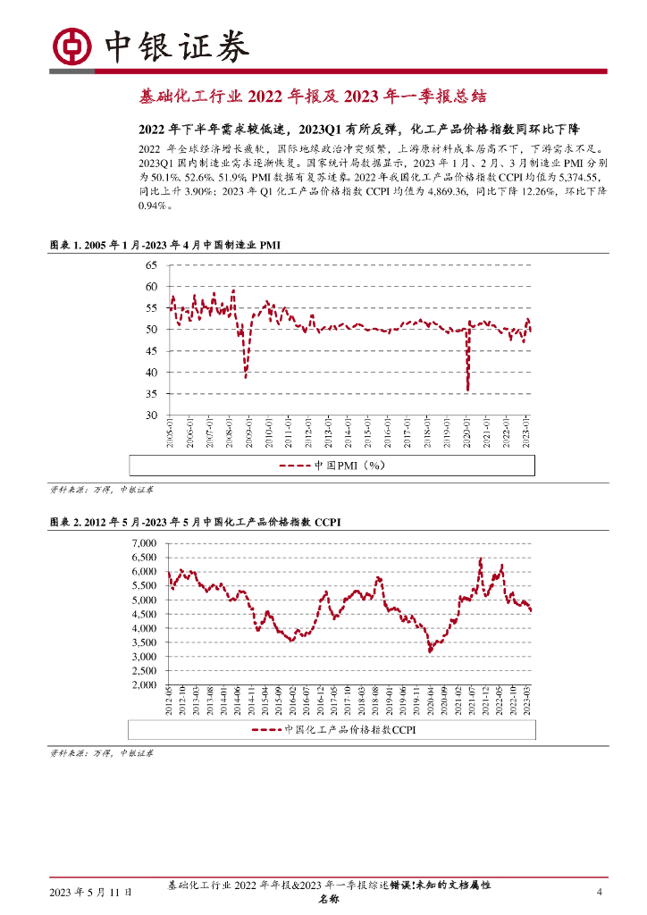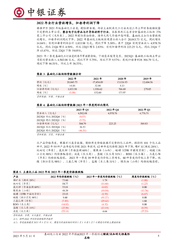 中银证券:基础化工行业2022年年报&2023年一季报综述:行业盈利能力承压,需求有待复苏.pdf