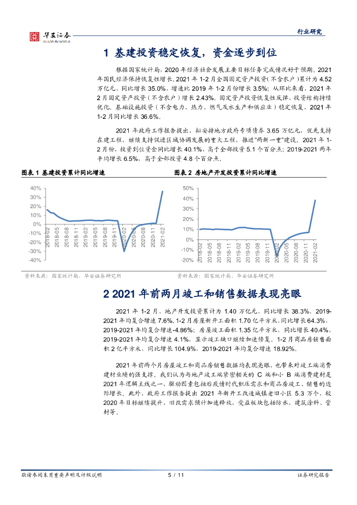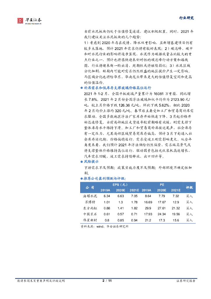 华安证券:建筑材料2021年1-2月行业数据点评:竣工端建材景气度或超预期,水泥玻璃需求启动.pdf