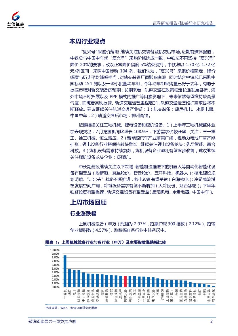 宏信证券:机械行业周报:“复兴号”采购价落地,继续关注轨交装备及轨交后市场.pdf