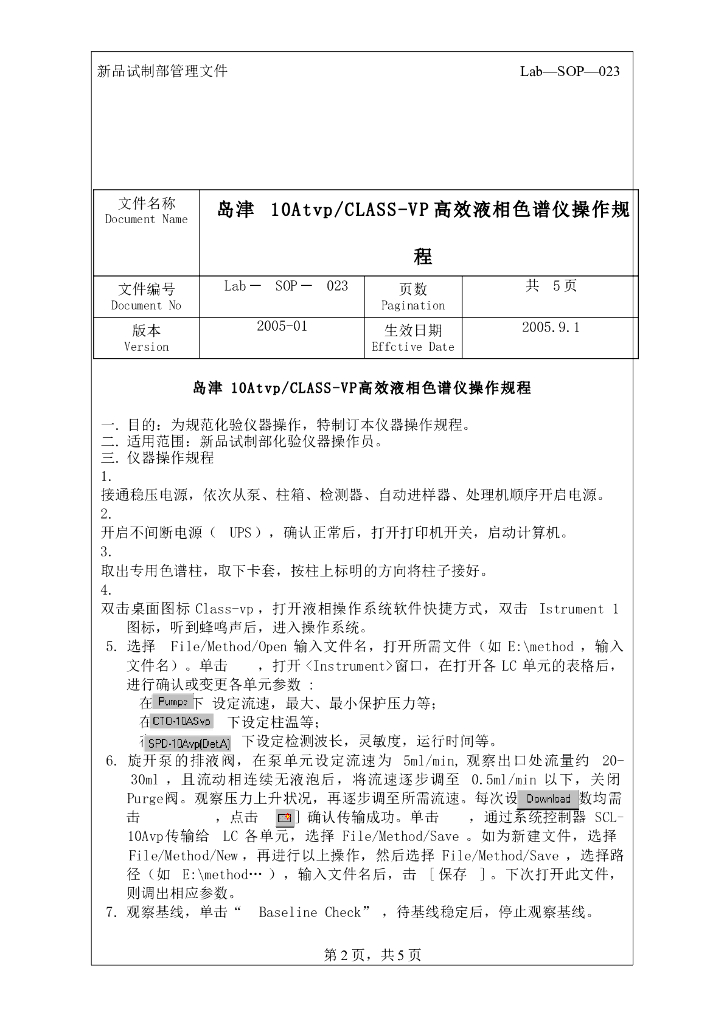 《药物检测分析技术》文献资料-岛津10Atvp CLASS-VP高效液相色谱仪操作规程.pdf