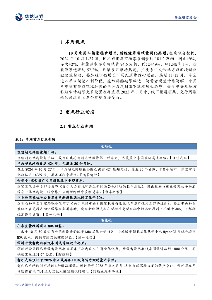 华龙证券:汽车行业周报:“银十”延续旺季热度,乘用车销量进入冲刺期.pdf