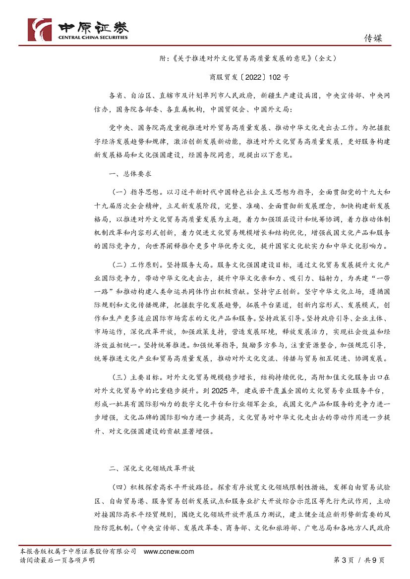 中原证券:传媒行业点评报告:《关于推进对外文化贸易高质量发展的意见》出台,政策压力有望减小.pdf