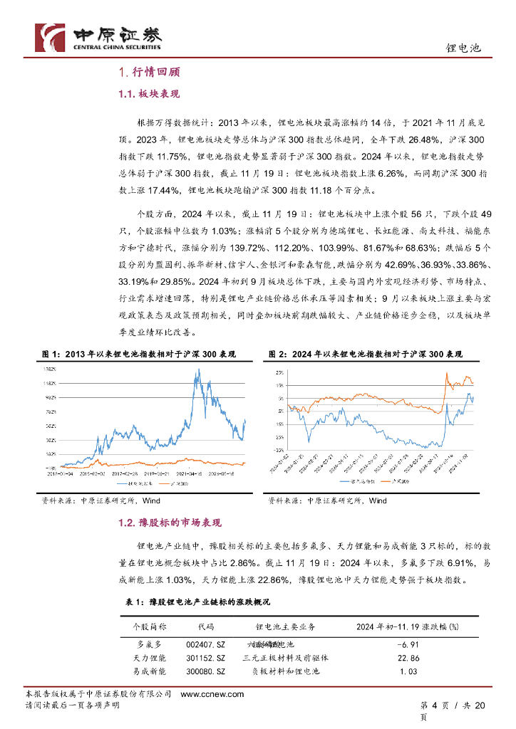 中原证券:锂电池行业2024年三季报总结及展望:业绩环比改善,板块积极关注.pdf