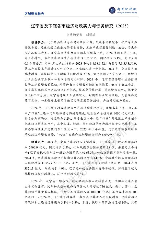 新世纪评级:辽宁省及下辖各市经济财政实力与债务研究(2025).pdf