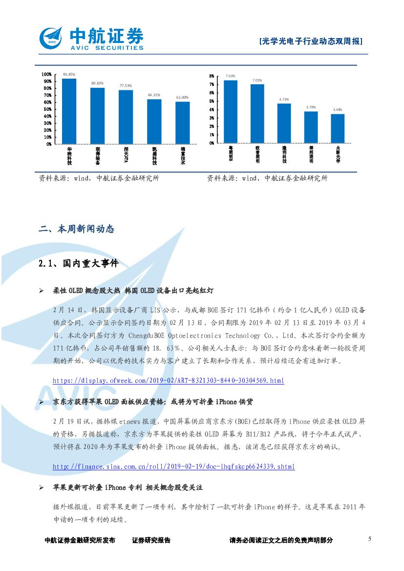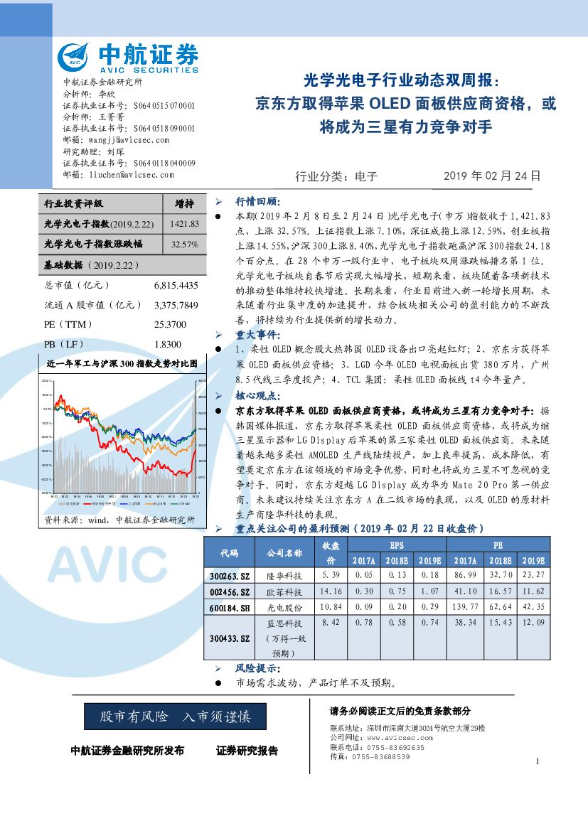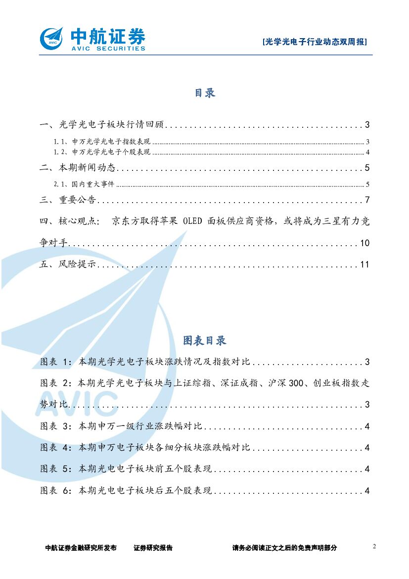 中航证券:光学光电子行业动态双周报:京东方取得苹果OLED面板供应商资格,或将成为三星有力竞争对手.pdf