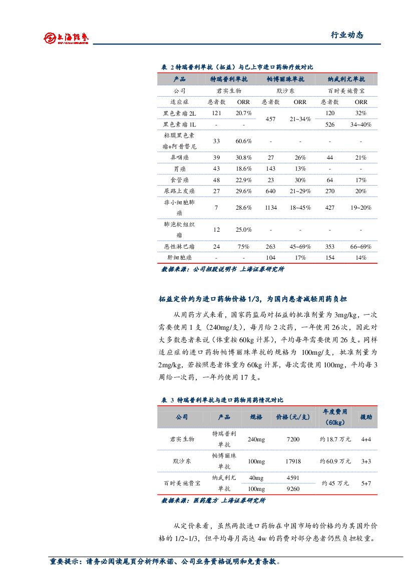 上海证券:医药生物行业动态:君实PD-1当前定价全球最低 先发优势有助实现快速盈利.pdf