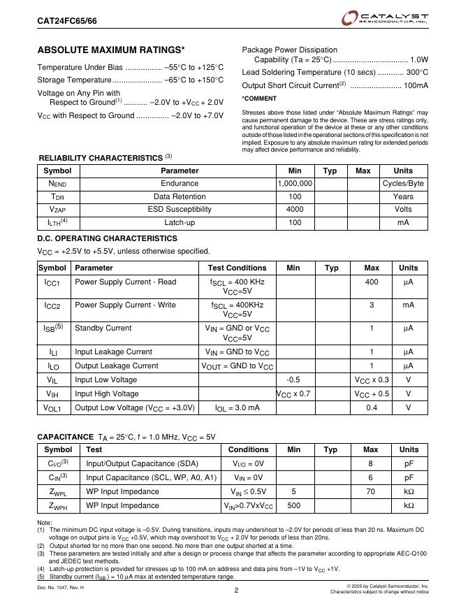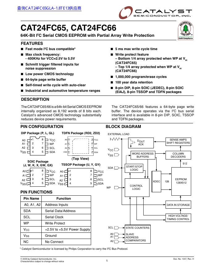 CATALYST CAT24FC65, CAT24FC66 数据手册.pdf