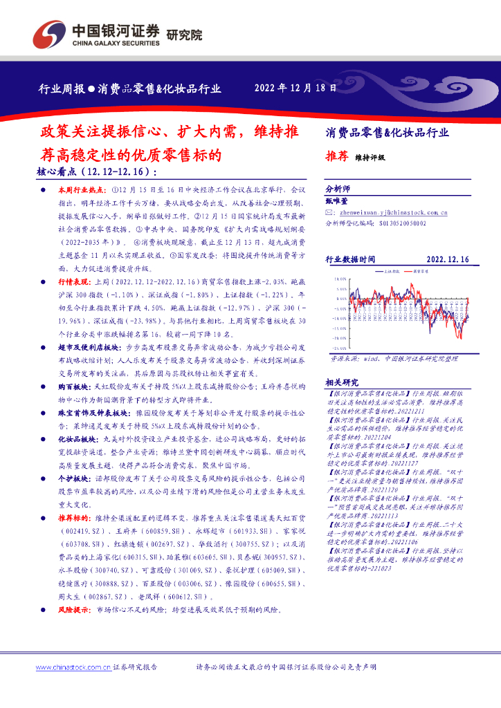 中国银河:消费品零售&化妆品行业周报:政策关注提振信心、扩大内需,维持推荐高稳定性的优质零售标的.pdf