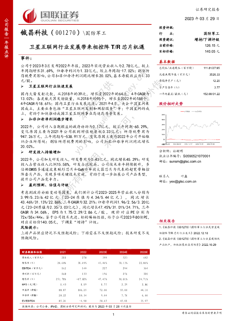 国联证券:铖昌科技(001270)-卫星互联网行业发展带来相控阵T/R芯片机遇.pdf